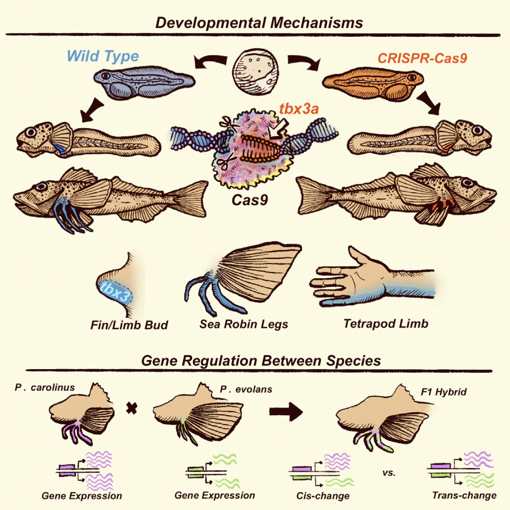 But how and why these traits evolved remained uncertain, until now. The study, “Ancient developmental genes underlie evolutionary novelties in walking fish,” which was published in Current Biology in October, provides new insights into the molecular underpinnings of evolutionary change, showing how genetic mutations in sea robins led to these novel features, which allow the fish to adapt to their environment in ways that other fish species cannot. The findings shed light on the broader principles of evolutionary biology, exploring how trait gain plays a role in shaping the development of new features in animals.