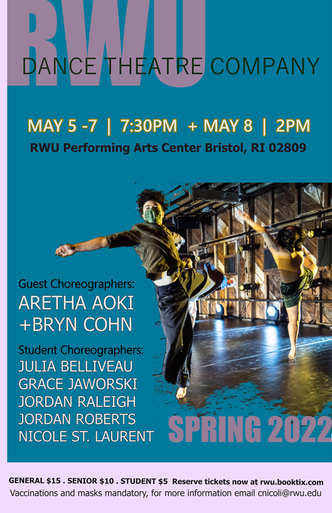 Dance Theatre Company – the Program’s professionally-oriented student dance company will be presenting this semester's capstone week of performances, featuring the work of our spring guest choreographers Aretha Aoki and Bryn Cohn – as well as five works by student choreographers: Julia Bellieveau, Grace Jaworski, Jordan Raleigh, Jordan Roberts, and Nicole St. Laurent! Join us in celebrating the successes of Spring 2022 – and have a chance to applaud our dancers for all their hard work and community spirit!