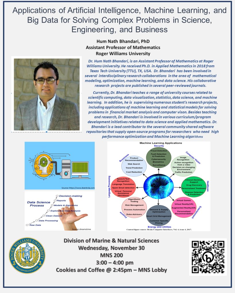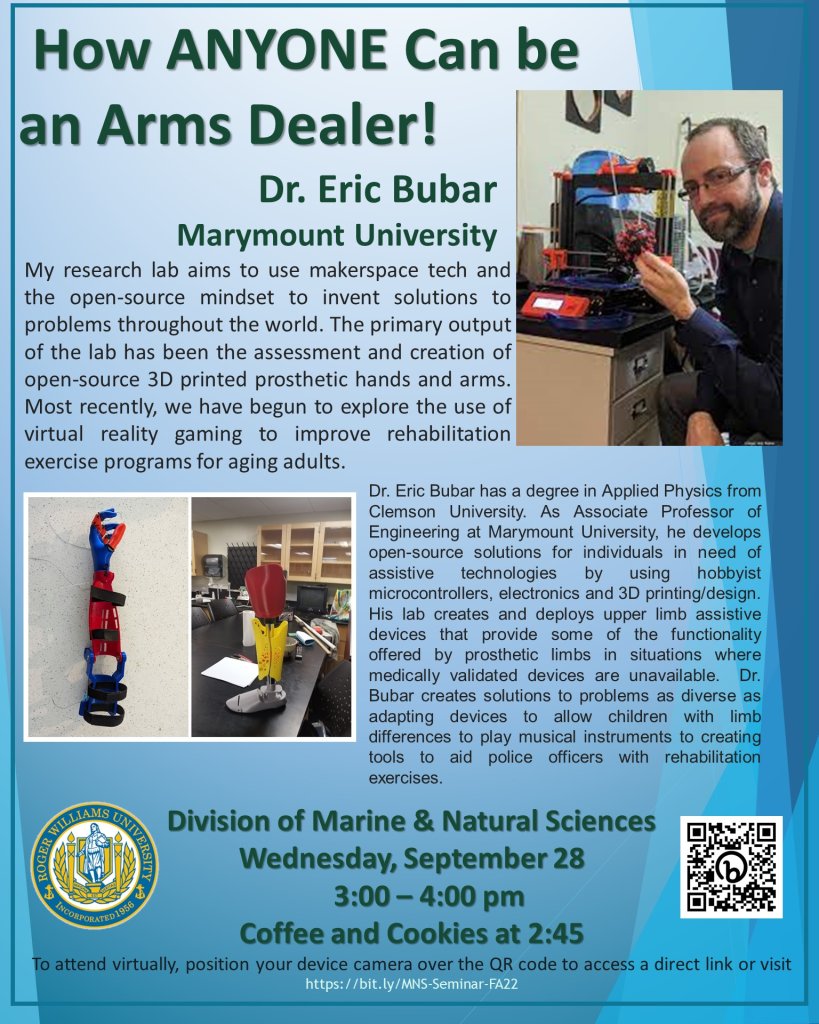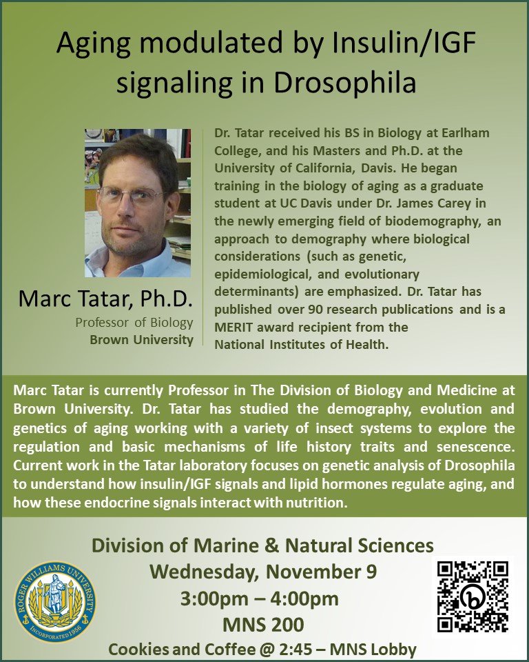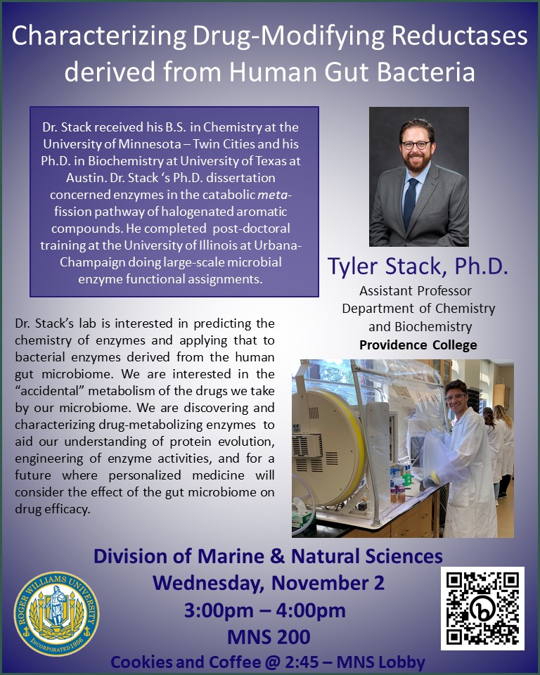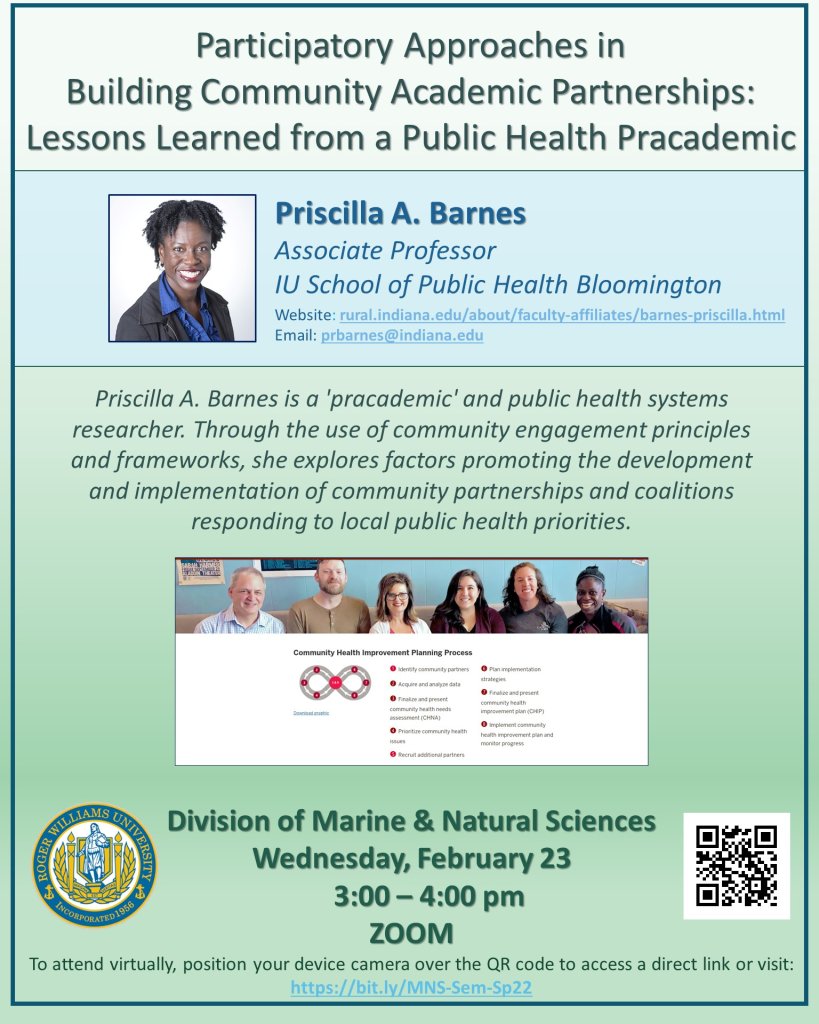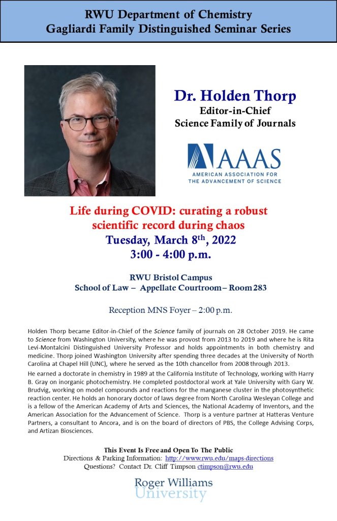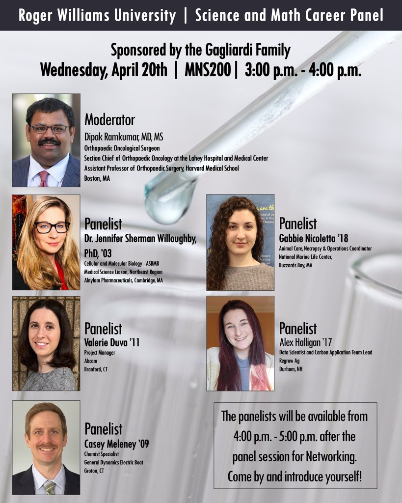 The weekly Roger Williams University Marine and Natural Science Seminar is held every Fall and Spring semester through the division of Marine and Natural Sciences in MNS 200 and/or on Zoom. We invite speakers from within and outside the RWU community to speak on scientific topics including biology, chemistry, physics, math, public health, industry, and science communication & policy. This seminar series also holds events like Meet your Advisor in the Fall and Applying to Graduate School FAQ in the Spring.