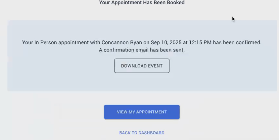 Once you click "schedule appointment" you will see this message