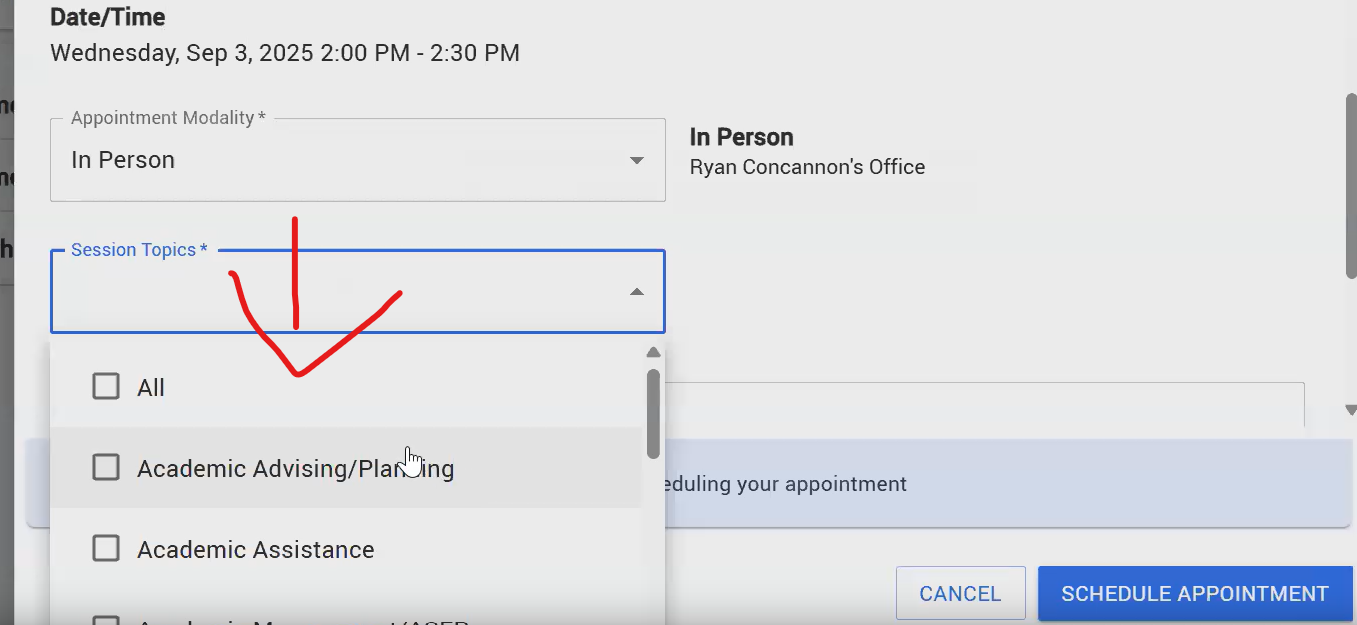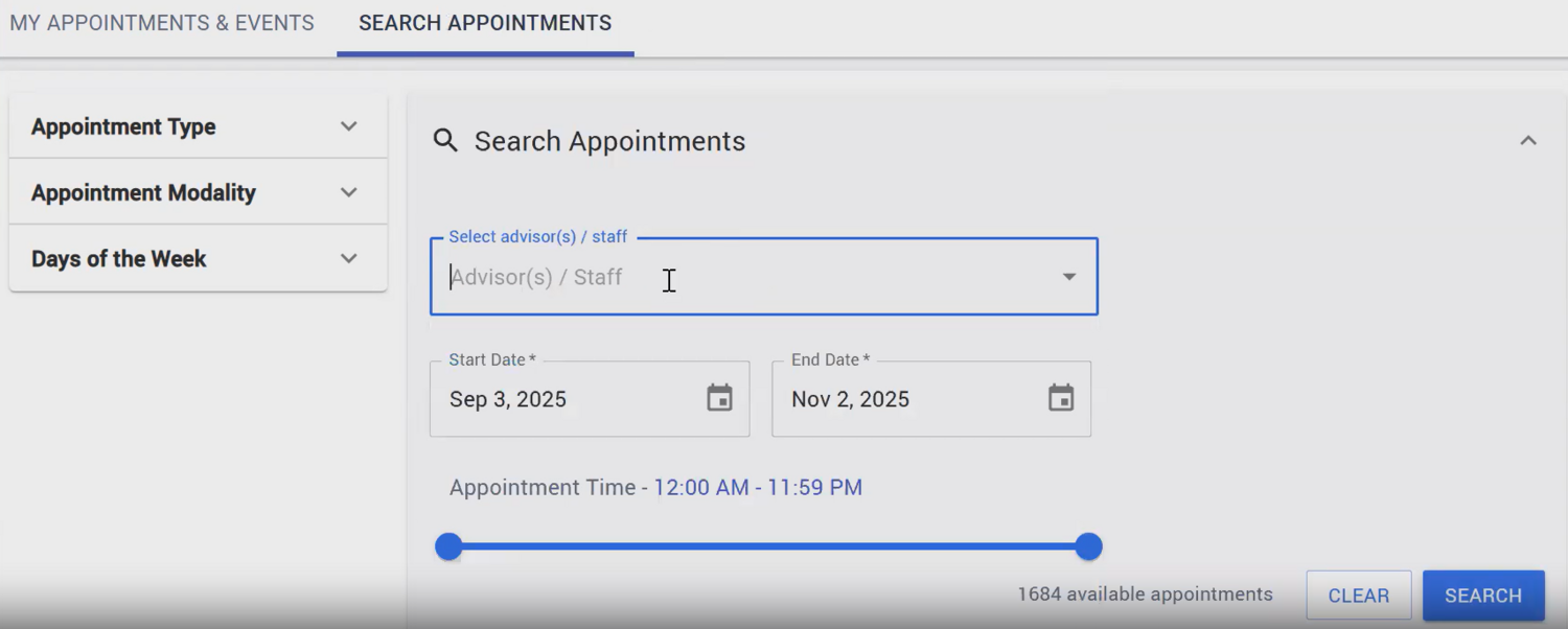How to book an Appointment with an advisor guide