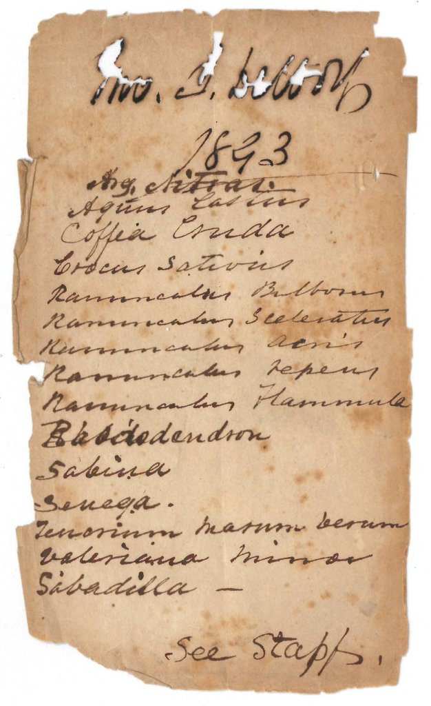 Handwritten Manuscript: Mr. DeWolf's' 1823 Inventory of Plants