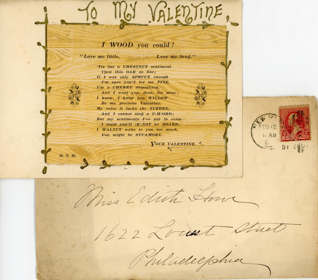 Included in the Fulton-Howe Collection are numerous valentine cards and notes written to the young Edith Howe from friends and famliy. This one was sent to her when she was 14 years old. Visit the archives to view more valentines and the complete collection.