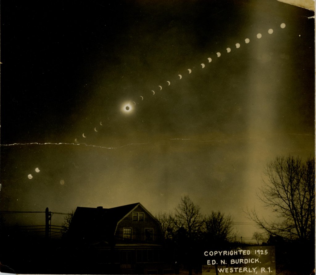 On January 24, 1925, a total eclipse of the sun was visible throughout much of New England. Mary Howe and her parents, Halsey and Edith DeWolf, went to Watch Hill, Rhode Island, to view the eclipse which lasted for about 2 and a half minutes. Her father bought her a pair of special eclipse glasses and recorded their observations.