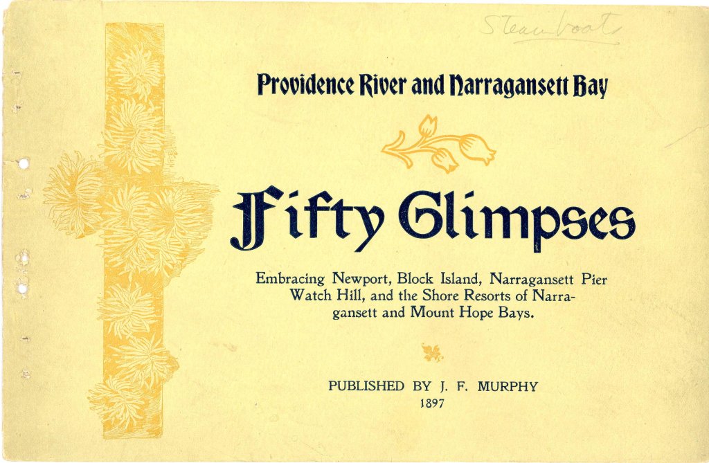 Viewbook [cover image]: Murphy, J.F. (publisher), "Fifty Glimpses of Providence River and Narragansett Bay: Embracing Newport, Block Island, Narragansett Pier, Watch Hill, and the Shore Resorts of Narragansett and Mount Hope Bays," 1897. Visit tour digital repository to view the complete booklet.