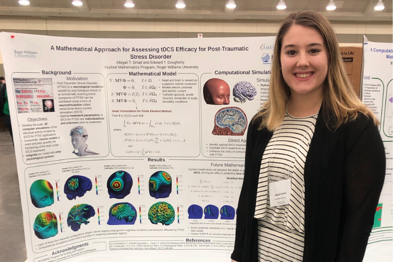 Small, who won Outstanding Poster in Bioinformatics, is also majoring in computer science. She began her research the summer between her freshman and sophomore years, when she got a Rhode Island Summer Undergraduate Research Fellowship (SURF), to investigate treatments of neurological disorders, under the guidance of Assistant Professor of Mathematics Edward Dougherty.