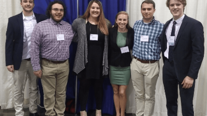 Senior applied math majors Abigail Small and Cole Foster won Most Outstanding Poster awards at the Joint Mathematics Meeting In Denver, Colorado this January