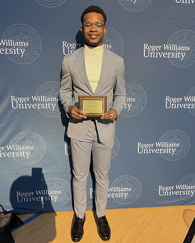 Vice President of Student Life John King opened the ceremony with a few remarks. "In our Division of Student Life Learning Model, we believe that as a result of their experience at RWU, students will meaningfully contribute to thriving and diverse communities," he said. "We identify four learning goals to achieve this educational priority: Self Awareness, Healthy Relationships, Cultural Humility, and Community Engagement. Today, we will celebrate shining examples of students fulfilling these learning outcomes along with academic excellence, civic engagement, and leadership."