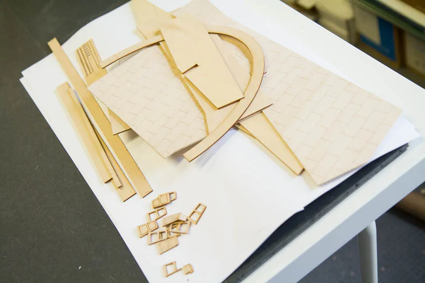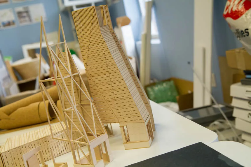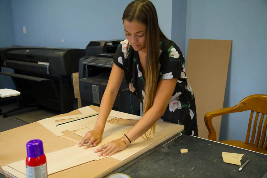 Porter spent hours over the summer sanding, cutting, gluing and making sure every piece of material she worked with was perfect for the scaled site model of a ticket booth kiosk she was building for the firm, Touloukian Touloukian Inc.