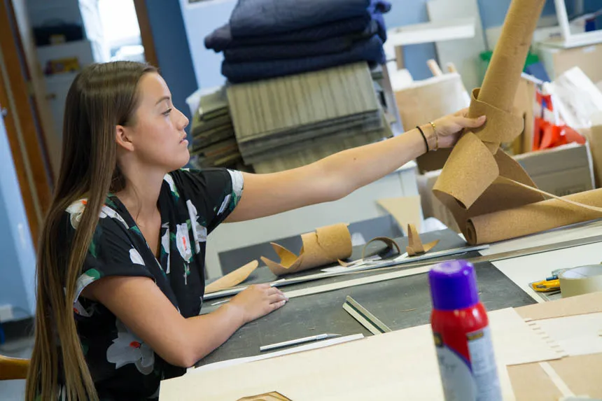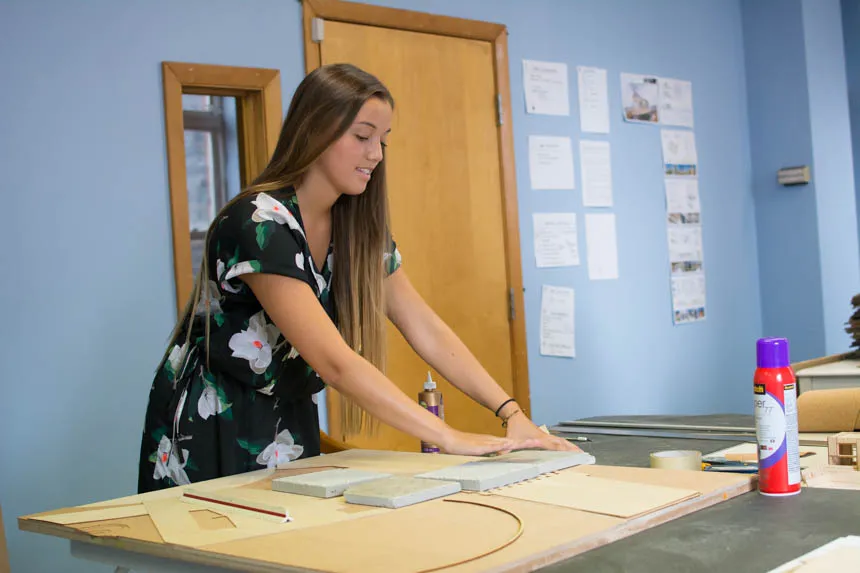As part of her summer internship at a Boston architecture firm, Gabrielle Porter '20 worked on building a scaled site model of a ticket booth kiosk the firm designed for a park in Buffalo.