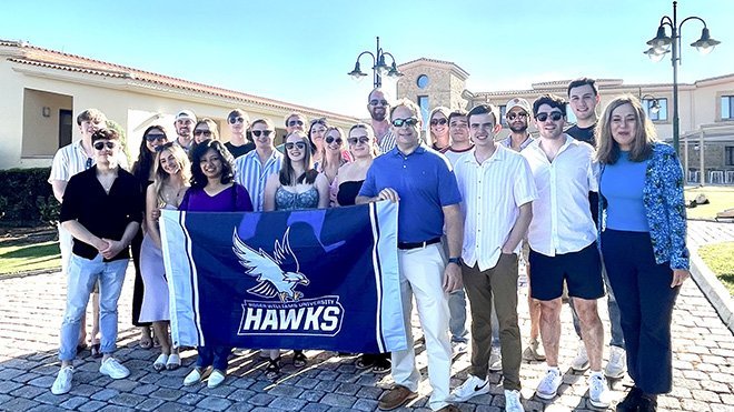 The event was part of an international experiential learning program between RWU’s Mario J. Gabelli School of Business and the American College of Greece (ACG), a partnership facilitated by RWU President Ioannis N. Miaoulis, a native of Greece, and supported by a U.S. Department of Education grant. Over the 2022-23 and 2023-24 academic years, two cohorts of MBA students studied crisis management in their RWU courses and connected with small- and medium-sized businesses in Greece to learn their challenges and develop business strategies for them.