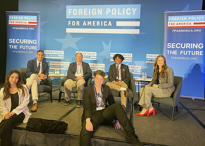 WASHINGTON – In May, five Roger Williams University students, along with Joseph Roberts, Chair and Professor of Politics and International Relations at RWU, joined United States powerhouses in conversations about national security issues at the Foreign Policy for America Leadership Summit in Washington, D.C.