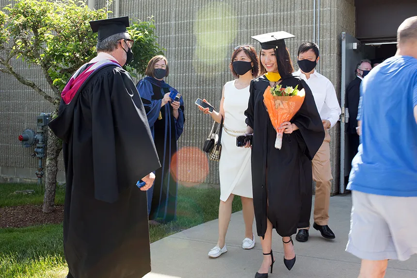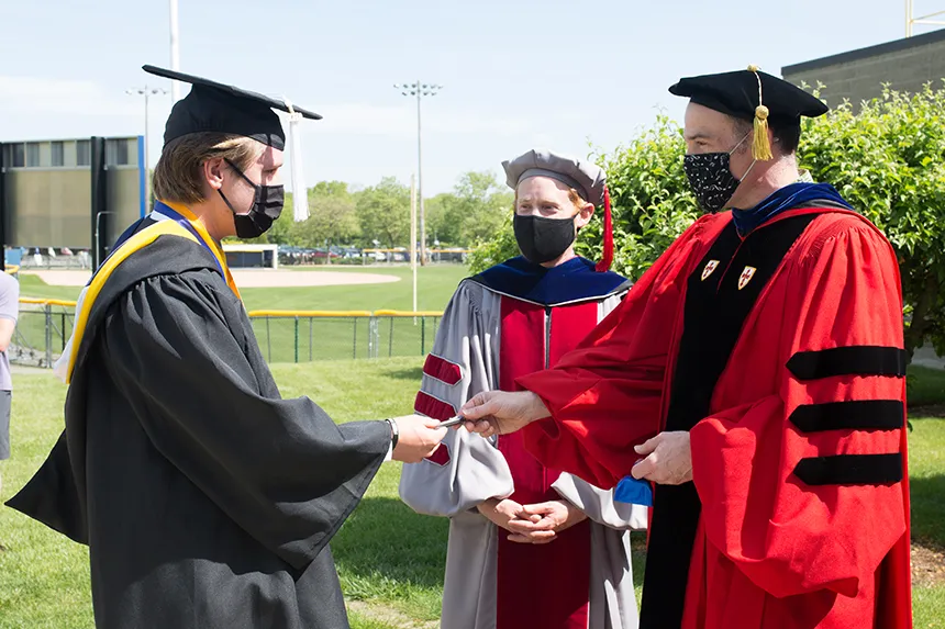 “The world needs you to think beyond yourself. A Roger Williams education is a call to do this. We need you to think about the impact of your actions on others, the impacts of a business decision on the environment, the impact of a policy on marginalized individuals,” he said. “Each choice carries significant responsibility, but you can handle it. Asking anything less of you is to diminish the importance of the roles you will play and the world needs of you. You are a Roger Williams graduate! So to you, the alumni Class of 2020, now is your time to go forth into the world with confidence and resolve and make your mark on the world.”