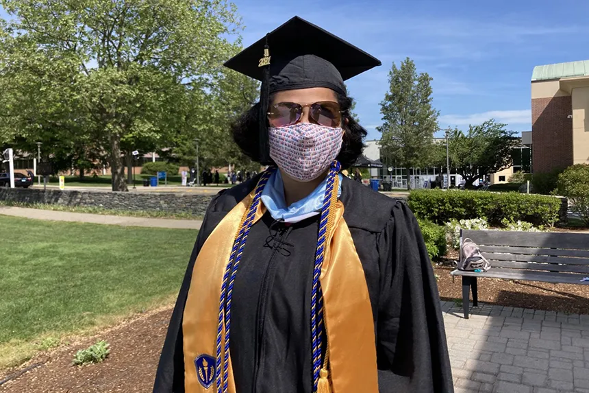 On behalf of the 38,000-member RWU Alumni Association, Nibal Awad, Class of 2012 and Alumni Association President, told the Class of 2020 how proud she was to officially welcome them as alumni.