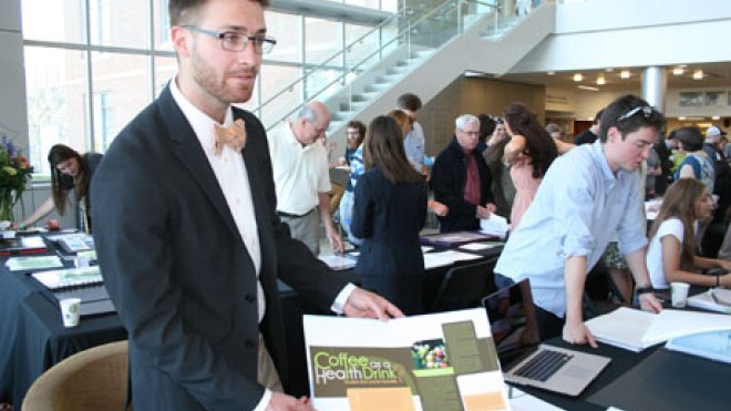 BRISTOL, R.I. – Challenged to explain their creative executions and design philosophy through a portfolio of their culminating work, responses from the senior graphic design majors ran the gamut from conceiving a crafty feel to a surfing analogy.