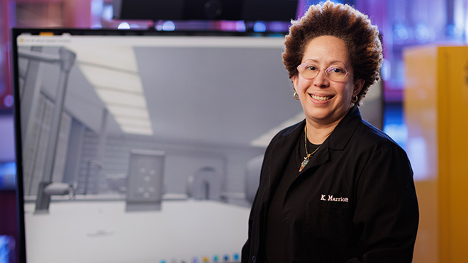 Karla-Sue Marriott’s virtual-reality program immerses students and allows them to experience what it’s like to process a crime scene.