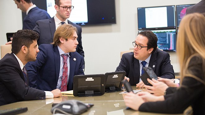 In the CAFE program, students manage two distinct investment portfolios in real time, learning how to research, analyze and manage real-dollar investments without having to vet their decisions by an advisory board. They work five days a week inside the E.L. Wiegand Center for Advanced Financial Education, a replica of a Wall Street trading room that boasts state-of-the-art investment management technology and 24-7 connectivity to stock information and world news. The program has won several portfolio management awards, including two national collegiate championships. International educational experiences are embedded in the program, and students have presented their methodology to CEOs and CFOs at global financial institutions around the world, from Tokyo to Hong Kong, Dubai, Shanghai, Frankfurt, Greece, and London.