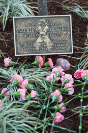 BRISTOL, R.I. – More than 100 people from the Bristol and Roger Williams University communities came together on Oct. 24 for the official unveiling of the Gloria Gemma Breast Cancer Resource Foundation Garden of Hope at the new Bristol Community Center. It was a bit of a bittersweet celebration as the garden opened to the public for the first time on what would have been Bristol resident Laurie Cordeiro’s 53rd birthday. Cordeiro, who was diagnosed with triple-negative breast cancer in 2009, conceived the garden as a place of reflection and meditation for those affected by the disease that would eventually take her life.