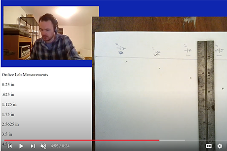 We take zoomed-in video of the various measurements we are taking, whether it is a pressure measurement using various pumps, or if we are using the wind tunnel, we might zoom in and show velocity measurements, pressure measurements, or the rotation rate of the engine. Lots of numerical data shows up on camera, so the students not only watch the videos but understand the process of the data collection. By watching the videos, they are in some ways collecting the lab data on their own. They are getting all the data they would if they were physically in the lab, and can still do all of the analysis. In a lot of ways, we are still able to maintain the learning outcomes.