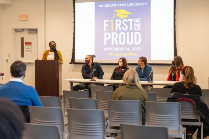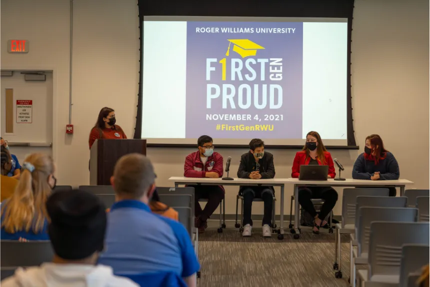 “If you are a first-generation student at Roger Williams, you have a wonderful community of people who see you, value you, and respect you, and want to celebrate the accomplishments that you are building on a day-to-day basis. Every moment you have, every time you show up to class, every small victory, we’re here to cheer you along,” she said.