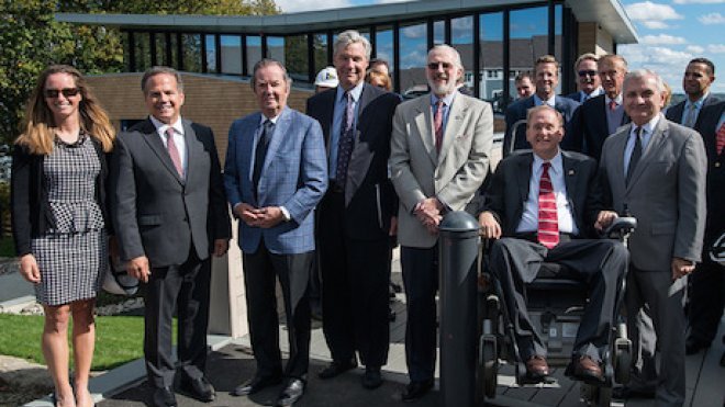 BRISTOL, R.I. – Sunny skies prevailed over sparkling waters Friday when the Roger Williams University community gathered with the Board of Trustees and the U.S. Congressional Delegation of Rhode Island to officially dedicate the Richard L. Bready Mount Hope Bay Sailing and Education Center – a completely donor-funded waterfront facility that will serve as home to the national powerhouse RWU sailing team and an educational facility for students of all ages from across campus and the Ocean State.