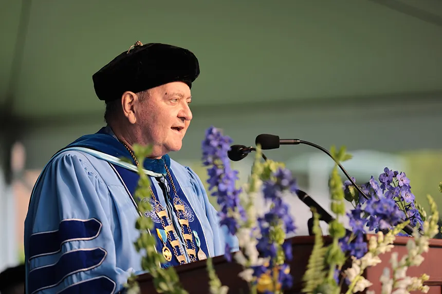 In his remarks, RWU President Ioannis N. Miaoulis urged graduates to chart a path fueled by conviction and to let their college experience inspire bold, forward-looking action.