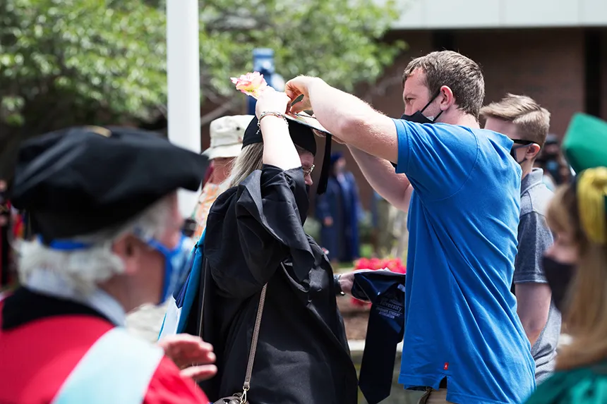 Spears, the executive director of Tomaquag Museum, was one of two local Indigenous leaders to co-deliver the keynote address, as Roger Williams celebrated a combined Commencement weekend on May 21 and 22, conferring approximately 993 bachelor degrees, 182 master’s degrees, 152 law degrees, one master of law studies degree, 28 associate's degrees, and 14 certificates for 2021 graduates, while also welcoming back the Class of 2020 for a Commencement celebration and one-year reunion on May 23.