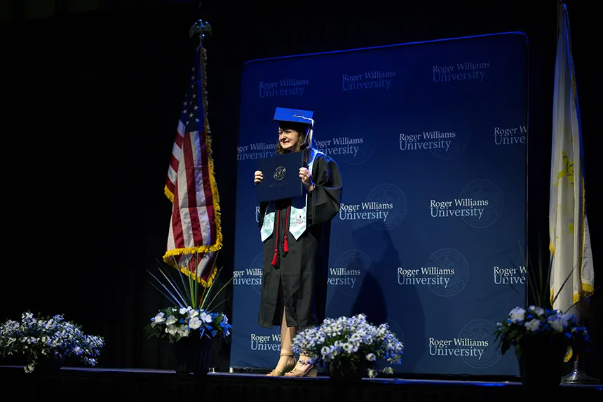 When commencing the next part of their journey, Spears encouraged Roger Williams University graduates to ask themselves: “Have you ensured equity and justice for others? How can you be a bridge or catalyst for positive change? Can you be a mentor, role model, or create a pathway for those in our country or world that have been oppressed? … How can you ensure the health, well-being, equity, and justice for all through the contributions you bring to the world?”