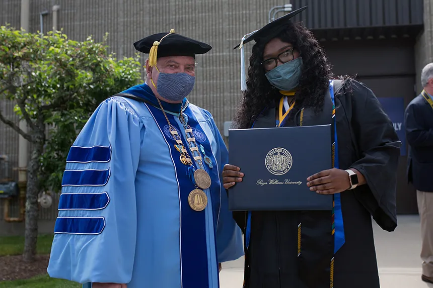 With a well-rounded and interdisciplinary liberal arts education and guided by RWU’s core values of “engagement, experience, inclusivity, innovation and transformation,” the graduates are well equipped to become the leaders the world needs, according to student commencement speaker Shannon DeFranza ’21, an architecture major from Oceanside, N.Y.