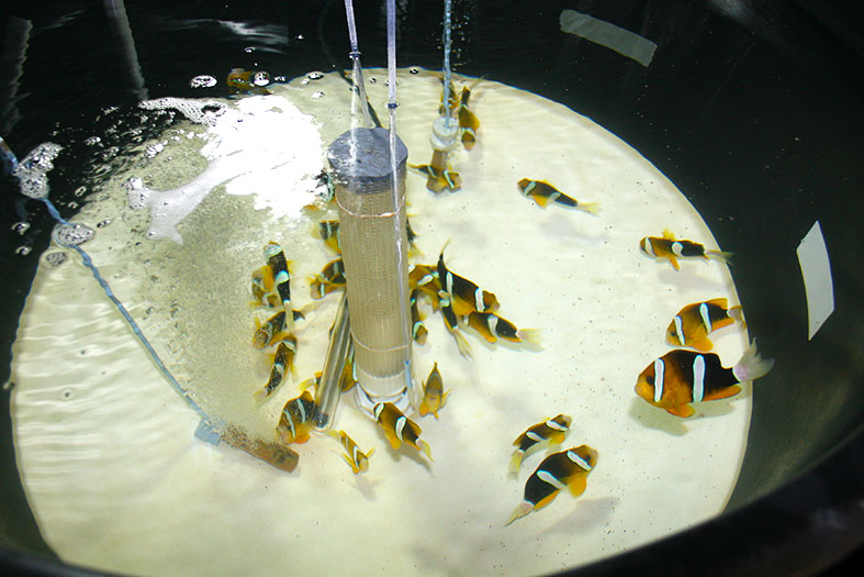 The clownfish in their experiments were exposed to cyanide in baths for different lengths of time. Not enough to kill the fish, but to stun them as if drugged by a fisherman using cyanide in the wild. Once exposed, cyanide is quickly metabolized into thiocyanate, which like other detoxification byproducts, can be found in the bloodstream.