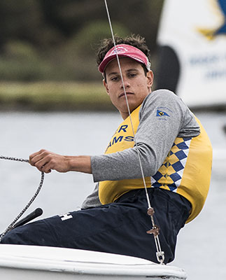 Skipper Spencer Cartwright '21 is team co-captain with Emily Gildea '21. He came to RWU from his home country of the Bahamas because he was looking for a school with a top sailing program and an esteemed Civil Engineering program. Browsing college sailing scores, he came across RWU.
