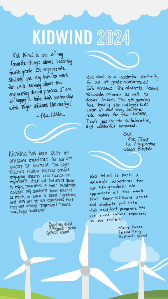 The initiative started in 2019, when RWU Associate Professor of Engineering Maija Benitz and Professor of Science Education Li-Ling Yang saw an opportunity for RWU to help fill a gap in the local school district and give students of both disciplines a revolutionary experiential learning opportunity. Now, in 2024, KidWind has reached more than 1,000 fourth graders.