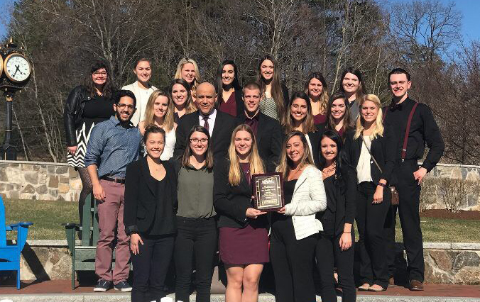 The Analytics Club team is made up of Robbie Blier '17, Makayla D'Urso '17 and Madison McCormack '17, who placed first nationally in the data visualization category. The second team is made up of sophomores Samantha Bilinsky, Samantha Kane and Kyle Leach, who placed third nationally in the data analysis category. The advertising team is made up Nick Barbaria, Kara Bickford, Justin Bradley, Chandler Capozzi, Julia Carter, Alexis Church, Jared Clough, Emily Crafts, Augie Dickinson, Melissa Foote, Kat Fried, Bridget Gillis, Chris Hanson, Taylor Hawes, Jillian Katz, Erica Koljonen, Ashley Lamontagne, Rachel Lehman, Alissa McGeehan, Mariana Tzitzouris, Kat Waters, Ally Weiner. Senior James Brennan, who is not in the class, helped the advertising team film, sound mix and edit the video ads they made for their presentation.