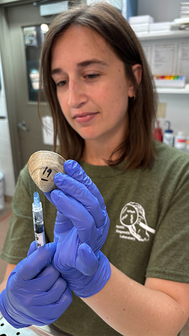 Typically, researchers diagnose the disease histologically, meaning a pathologist reads tissue samples under a microscope, a method that can take up to six weeks and is always lethal to clams. But the RWU ADL researchers have developed a faster, non-lethal method using a quantitative polymerase chain reaction (qPCR) test to analyze hemolymph samples. Along with the benefit of this being a non-lethal detection method, this diagnostic method also proves to be more sensitive, as it can detect lower levels of the disease, and is less expensive than the traditional diagnostic method.
