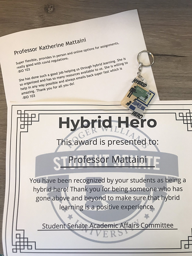 “Receiving this recognition from the Student Senate was a lovely and motivating surprise going into the end of the semester,” said Hybrid Hero Katie Mattaini, Lecturer in Biology. “All the faculty have been working so hard since March to provide the highest quality education we can in such difficult circumstances, and it was awesome to hear that some students find my efforts effective.”