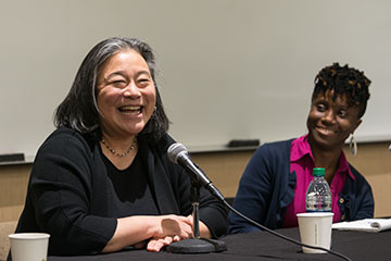 Tchen and Lawrence spoke to RWU students, faculty and staff about the false assumptions, “micro-aggressions” and other challenges that women of color face on the job.