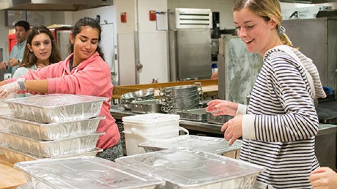 Every Monday, Wednesday and Thursday members of the RWU’s Food Recovery Network go to Upper Commons or the Baypoint Residence and Conference Center dining hall to recover perishable food that otherwise would be thrown away and donate it to local shelters. In the four years since the start of the club, which is a chapter of the national organization, it has recovered and donated over 25,000 pounds of food.