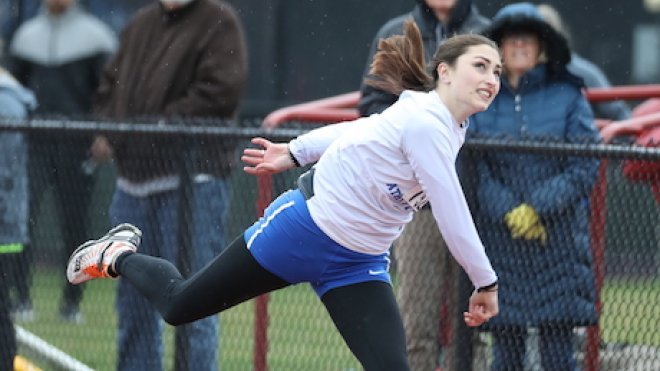 I am going into my second year of being a co-captain for the Women's Track & Field team. This is my senior year and I am excited about continuing my streak of breaking my own records. In freshman year I broke the High Jump and Javelin record, then I broke it again my sophomore and junior years. If I break my record again this senior year, I will be in a good spot for qualifying for Nationals again and my goal is to be All-American in High Jump or Javelin—both would be awesome too!