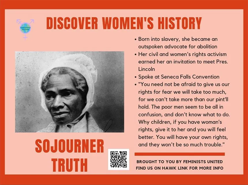Feminists United celebrated Women's History Month 2021 through a series of posters celebrating inspirational feminists and empowering moments in history.