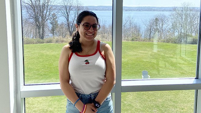 Senior Lucero Blanco (she/they), a Graphic Design Communications and Creative Writing double major and Marine Biology minor from Norwich, Conn., has set her sights on a career working in animation. The first-generation student, who interned last summer at Nickelodeon Animation in Burbank, Calif., serves on the executive board of the Marine Science Club and the Sexuality and Gender Alliance at RWU. She is also an active member of the Design Club, Art Club, Women of Color Club, and the Multicultural Student Union.