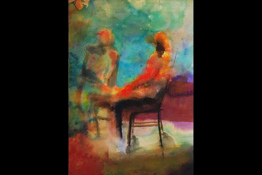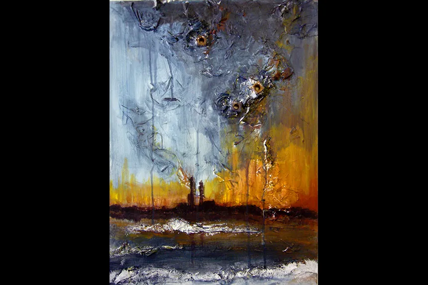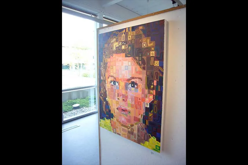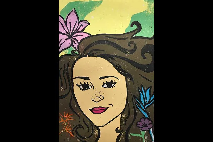 Self Portrait Palette-Knife painting by Reid Ennis. Beginning with drawing, VARTS students learn to translate their experience of the world around them into mark, line and tone. Painting, both water-based and oil, provides an exploration of color principles and behaviors. Printmaking offers a bridge between drawing and painting in graphic form. In all media, contemporary practices as well as art-historical precedents are emphasized.