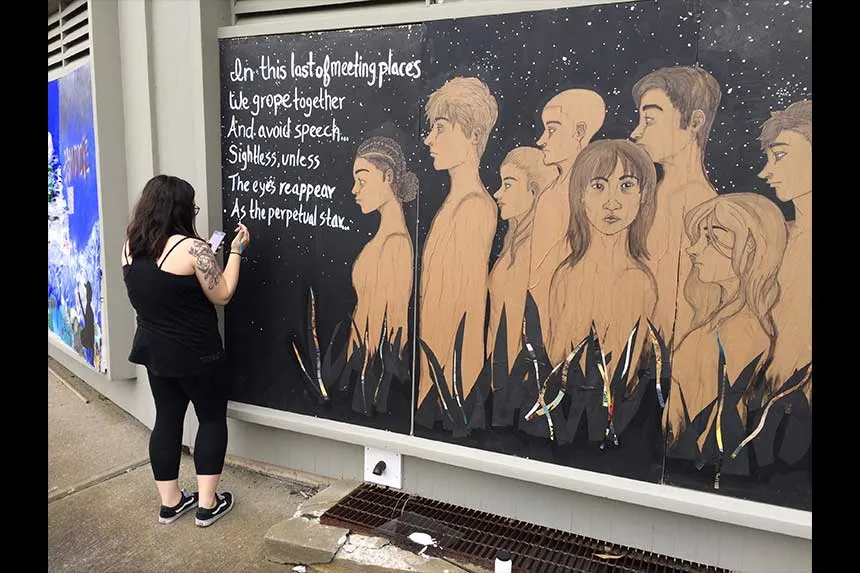 The Visual Arts program at Roger Williams University is interdisciplinary by design. Students are expected to explore a range of media from painting and ceramics to photography and video. Through the experiences of different media, students are challenged to find their own voice as an artist in work that reflects their individual aims and interests.  Our students develop proficiencies in several media, often combining media in new and unexpected hybrids. Students in VARTS at RWU routinely make high-quality work that we are proud to display throughout the campus community in our Art on Campus program.