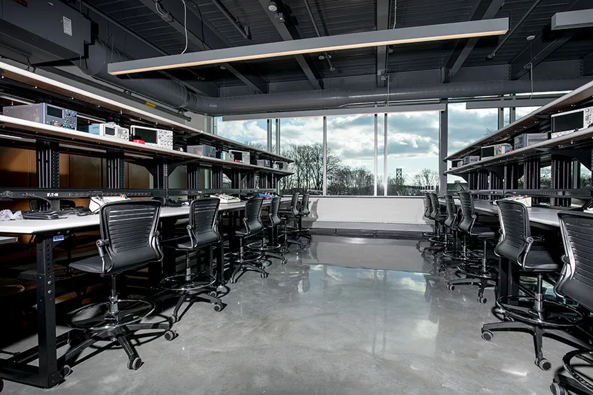 The newest building on the Bristol campus, the Richard L. Bready Applied Learning Laboratories is designed to foster collaboration and innovation while offering high-tech resources for experiential learning. The three-floor, 27,325-square-foot building features seven cutting-edge laboratories, senior design project rooms and open spaces dedicated to hands-on education.
