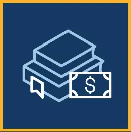 line art of stack of books with dollar bill