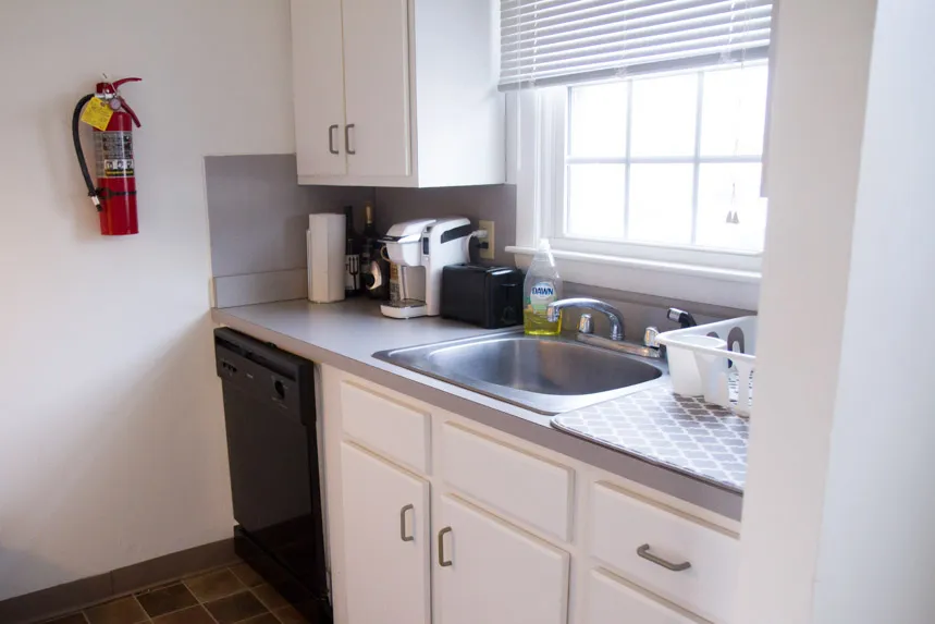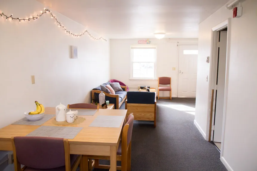 The Apartments include 10 one-bedroom apartments housing three residents and 12 two-bedroom apartments for four residents. Each apartment is carpeted, fully furnished and equipped with a living room, a kitchen with a full-sized electric stove/oven, refrigerator, dishwasher, dining room area and bathroom. There is a laundry facility on the first floor of each building.
