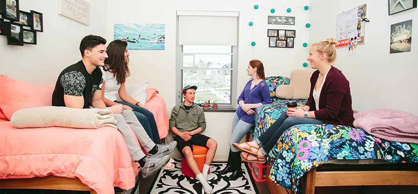 Boasting a chic and trendy look and beautiful views of the Mt. Hope Bay and athletic fields, this 120,000 square-foot facility is our newest residence hall. The North Campus community offers suites, apartments and traditional room options for returning students.