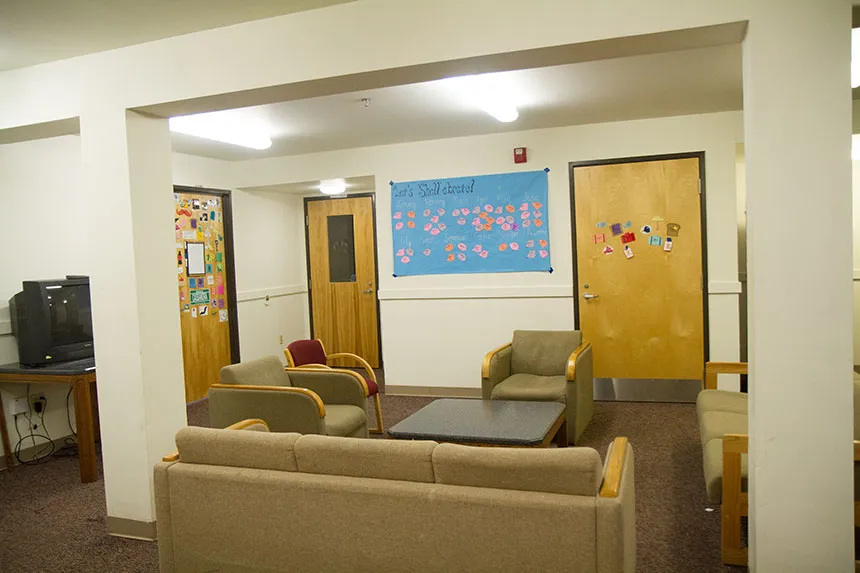 - Each floor also has its own lounge area with two private study areas, common couches, tables, chairs, a large-screen TV, and small kitchen area. Common rooms are the perfect place to meet people.