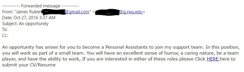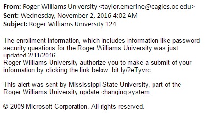 - Click here to view the bulletin sent by IT to the RWU community about this phishing email