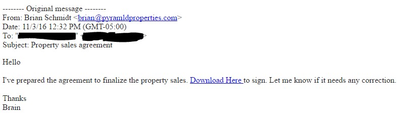 - The email appears to come from a legitimate organization but the "From" address is from a personal email such as @gmail.com.